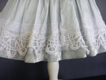 Robe taille basse réalisée dans une soie ancienne bleu clair.