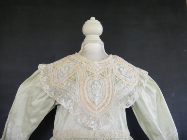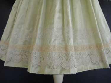 Robe taille haute réalisée dans une soie ancienne vert claire.