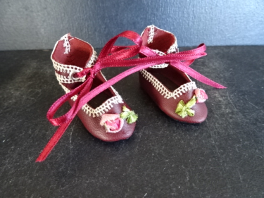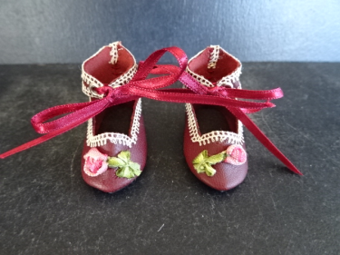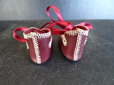 Entièrement réalisées à la main. Le galon ancien est collé tout autour de la chaussure.