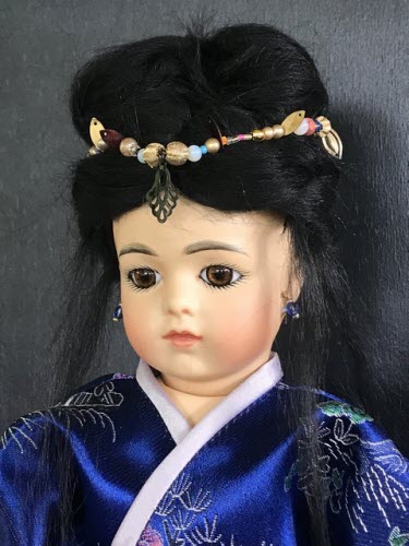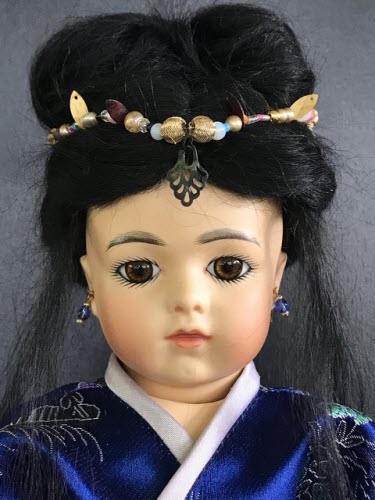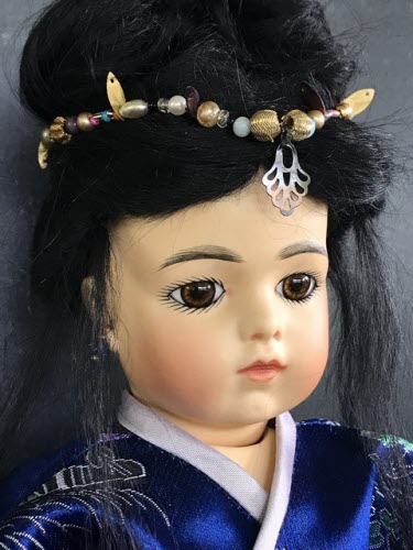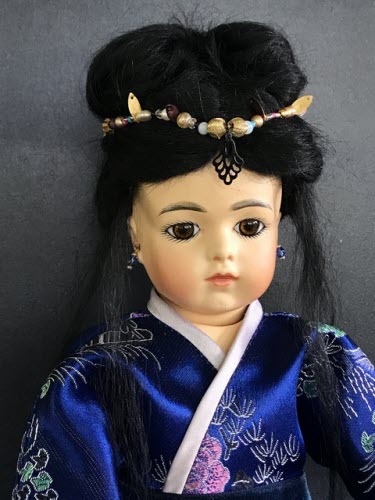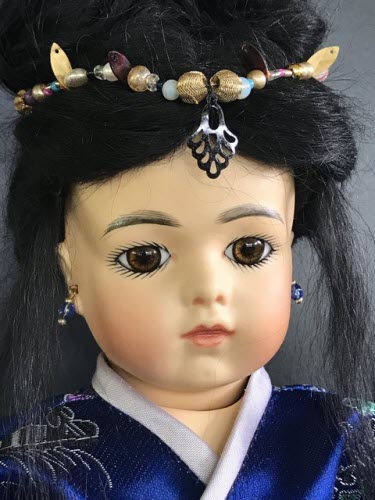 Tête en porcelaine teintée, magnifiquement peinte, yeux paperweight marrons.