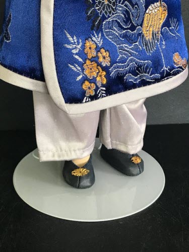 Superbe costume asiatique kimono, comprenant la veste et le pantalon en soie et satin.