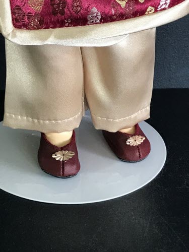 Superbe costume asiatique kimono, comprenant la veste et le pantalon en soie et satin.