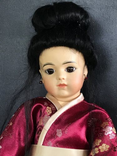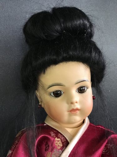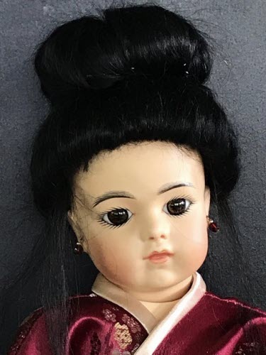 Tête en porcelaine teintée, magnifiquement peinte, yeux paperweight marrons.