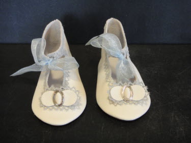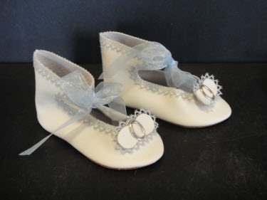 Chaussures en cuir de poupée style ancien.