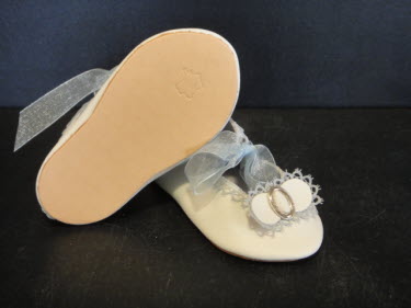 Entièrement réalisées à la main. Le galon ancien est collé tout autour de la chaussure.