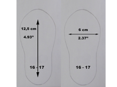 Taille 16-17 : 12,5 cm x 6 cm (Size 16-17 : 4.93''x 2.37'')