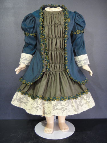 Superbe ensemble robe et veste pour poupée ancienne de 48-51cm. Corps 39cm.