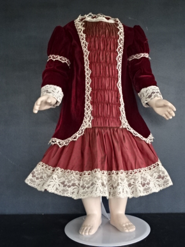 Superbe ensemble robe et veste pour poupée ancienne de 48-51cm. Corps 39cm.
