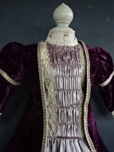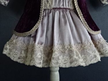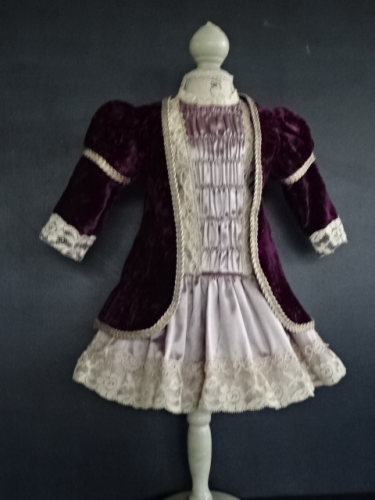 Superbe robe et veste pour poupée ancienne de 45-46cm. Corps 36cm.