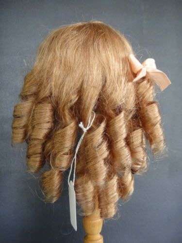 Perruque en cheveux 100% naturels, cheveux longs avec boucles et frange.