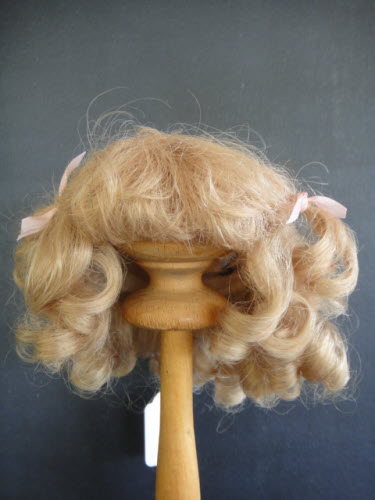 Perruque en cheveux 100% naturels, cheveux mi-longs bouclés, frange.