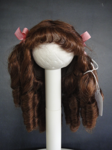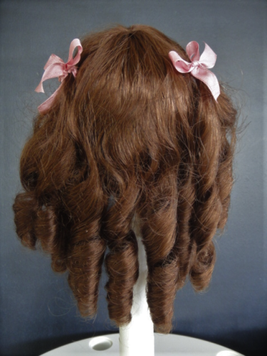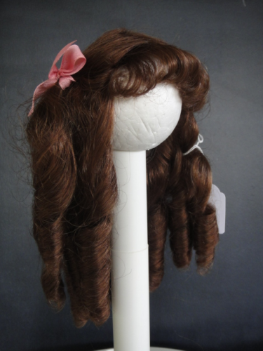 Perruque en cheveux 100% naturels, cheveux longs avec boucles raie sur le côté, sans frange. Natte sur le côté.