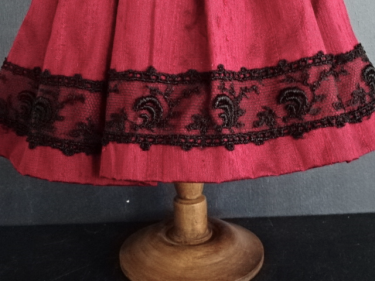 Robe taille haute réalisée dans une soie ancienne bordeaux.