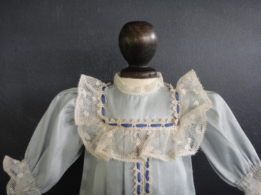 Robe taille basse réalisée dans une soie ancienne bleue.