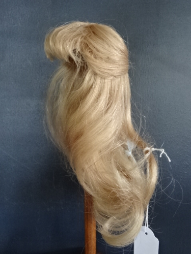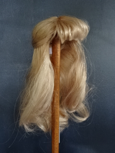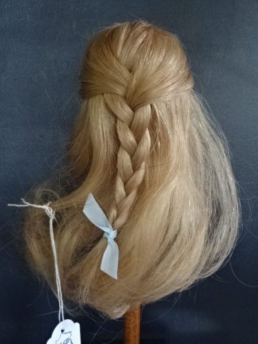 Perruque en cheveux 100% naturels, cheveux longs avec nattes et frange.