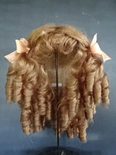 Perruque en cheveux 100% naturels. Cheveux longs bouclés , frange légère.