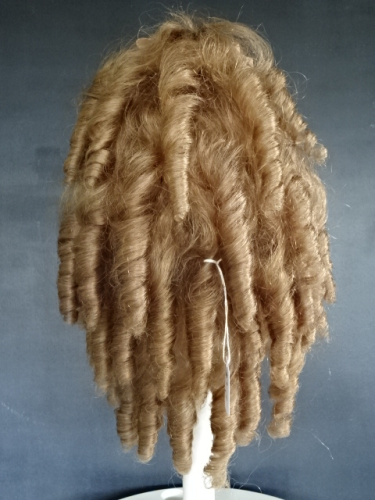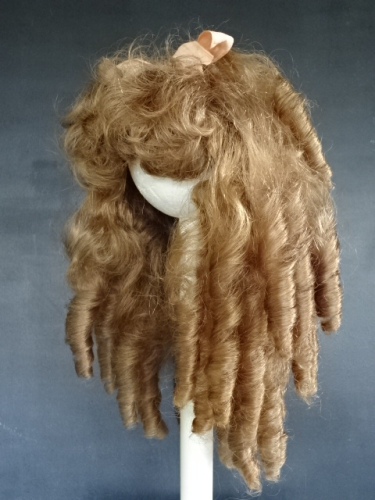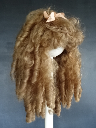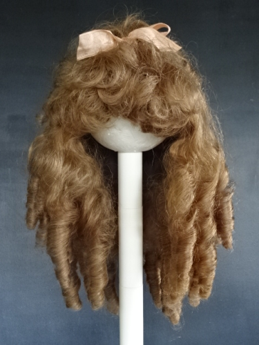 Perruque en cheveux 100% naturels, cheveux longs avec boucles et frange.