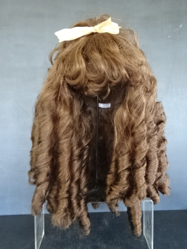 Perruque en cheveux 100% naturels. Cheveux longs bouclés avec frange.
