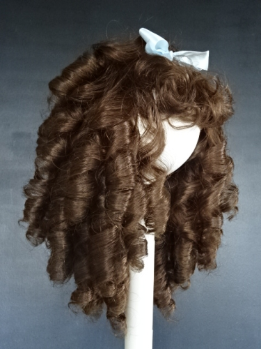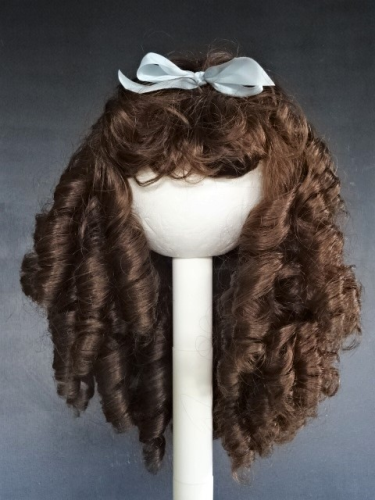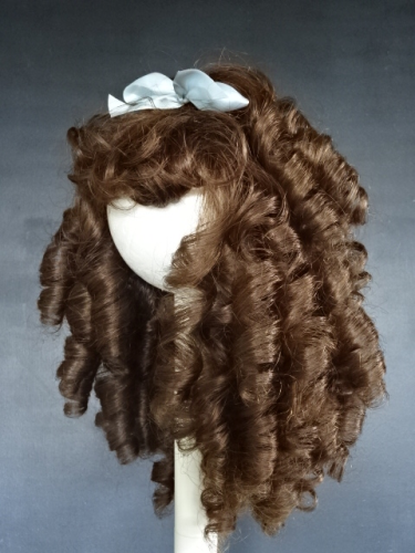 Perruque en cheveux 100% naturels, cheveux longs avec boucles et frange.