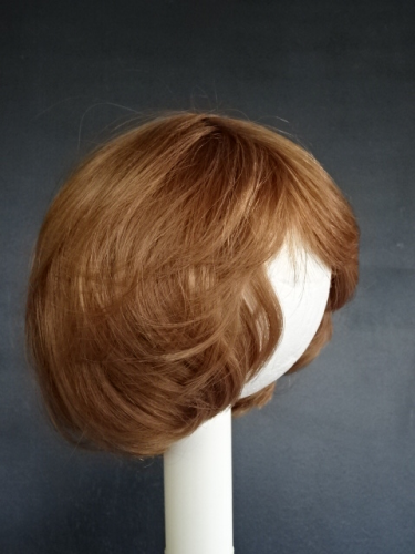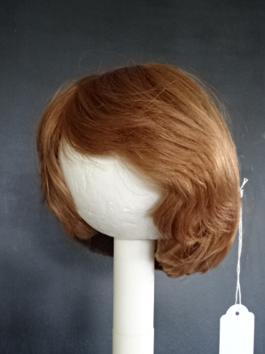 Perruque en cheveux 100% naturels, cheveux courts raides. Raie sur le côté.
