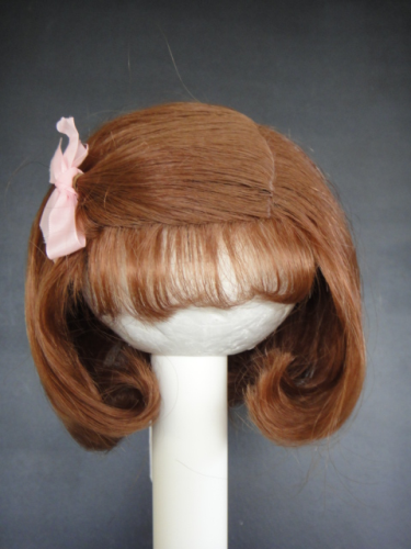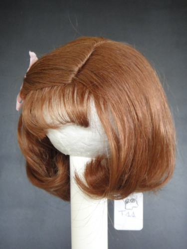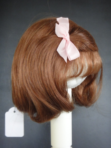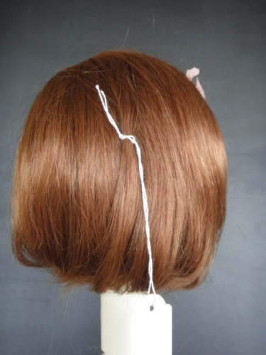 Perruque en cheveux 100% naturels, cheveux courts raides, raie sur le côté , frange légère, noeud sur le côté.