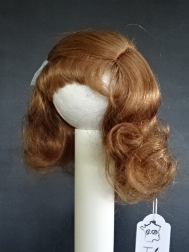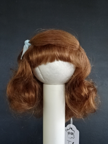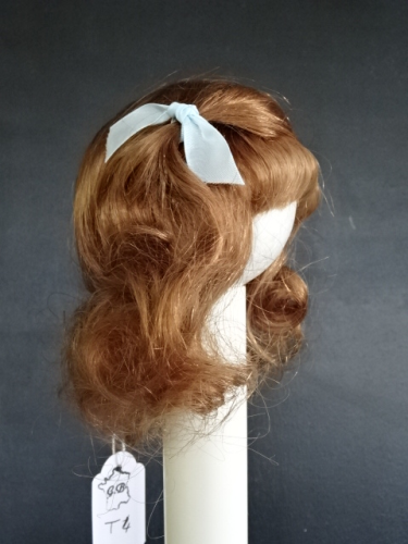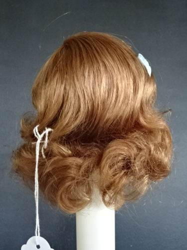 Perruque en cheveux 100% naturels. Cheveux longs bouclés, frange, noeud de chaque côté.