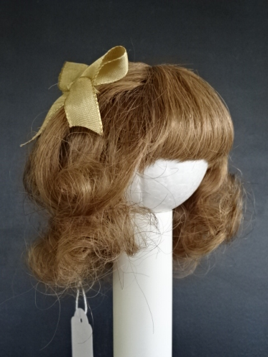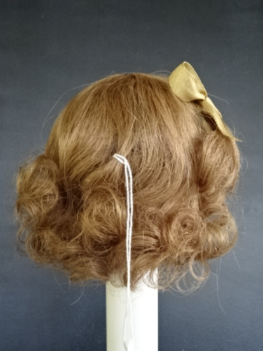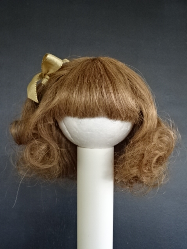 Perruque en cheveux 100% naturels. Cheveux mi-longs bouclés avec frange.
