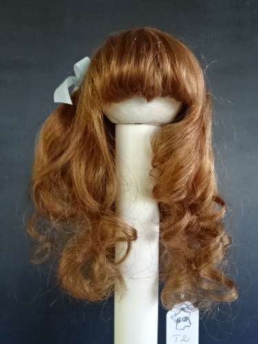 Perruque en cheveux 100% naturels, cheveux longs bouclés avec frange.