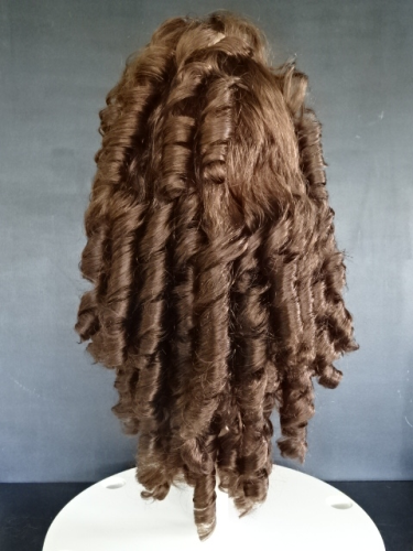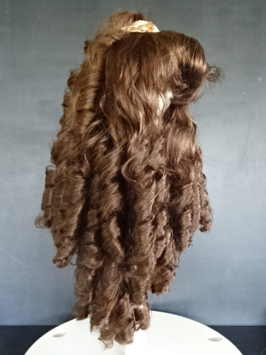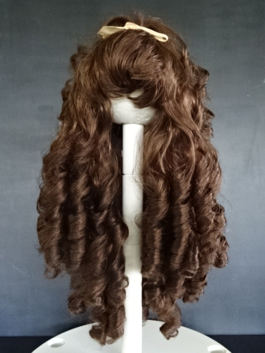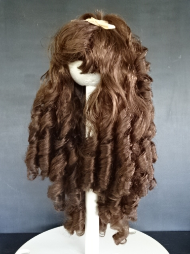 Perruque en cheveux 100% naturels, cheveux très longs avec boucles et frange.