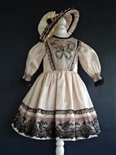 Superbe robe pour poupée ancienne de 68-69 cm (26.7" - 27.2")