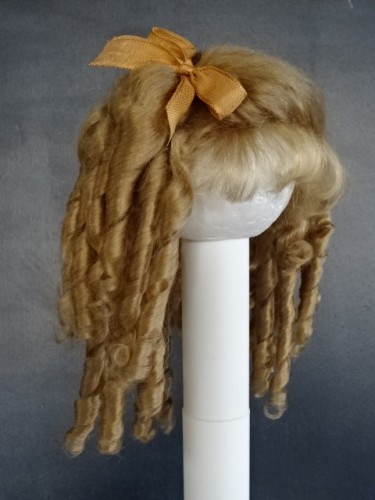 Perruque 100% mohair, cheveux bouclés, noeud et frange.