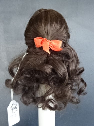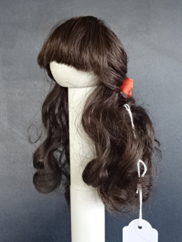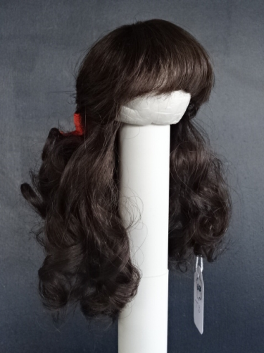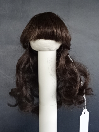 Perruque en cheveux 100% naturels, cheveux longs avec boucles et frange.