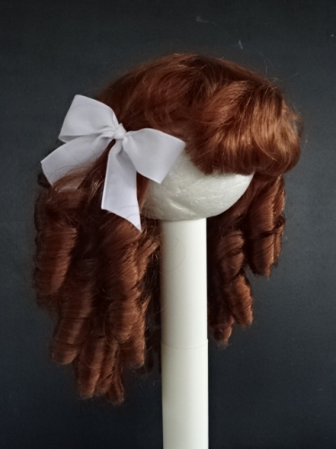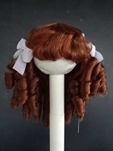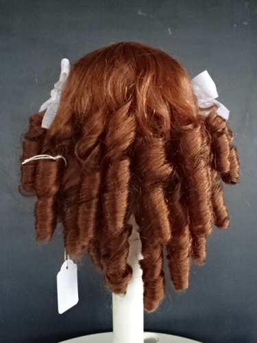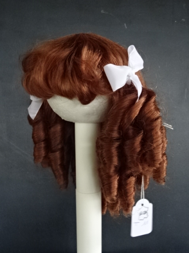 Perruque en cheveux 100% naturels, cheveux longs avec boucles et frange légère.