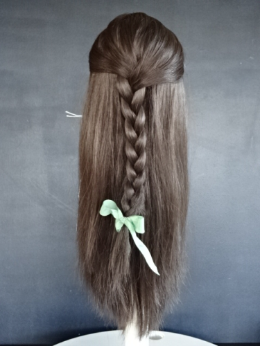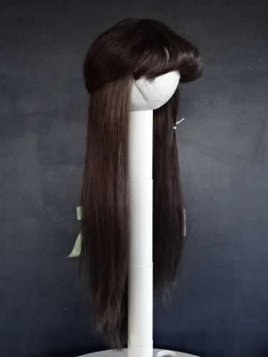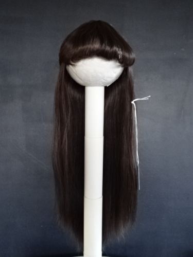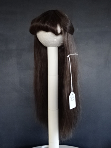 Perruque en cheveux 100% naturels, cheveux longs raides, 1 natte de chaque côté.