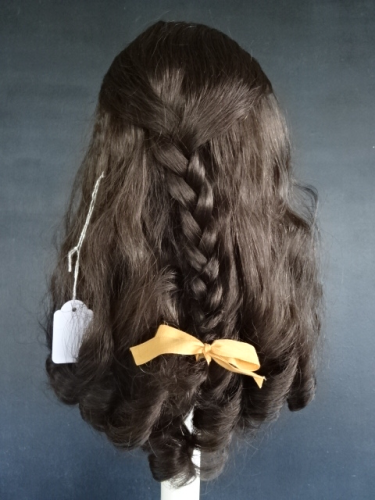 Perruque en cheveux 100% naturels, cheveux longs avec boucles , frange et natte dans le dos.