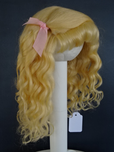 Perruque 100% mohair, cheveux bouclés, noeuds et frange.