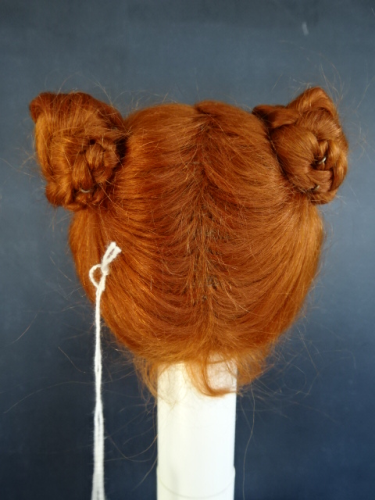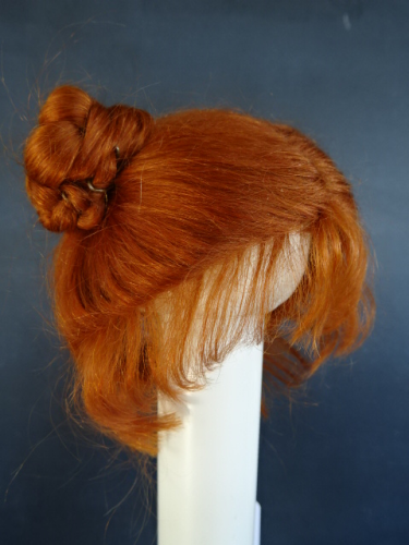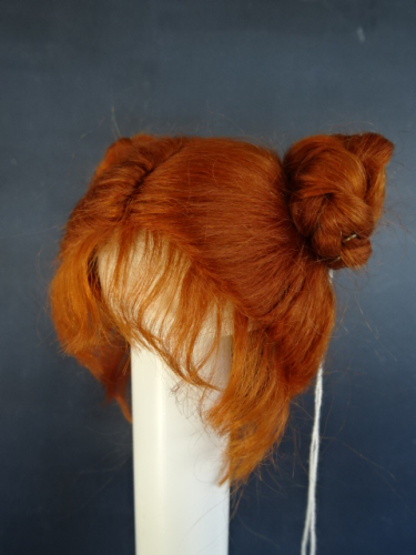 Perruque 100% mohair, macarons sur les côtés, frange fine.