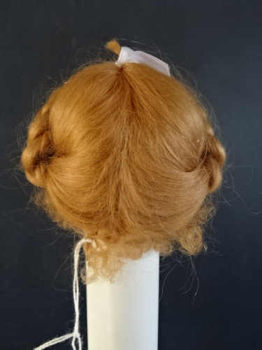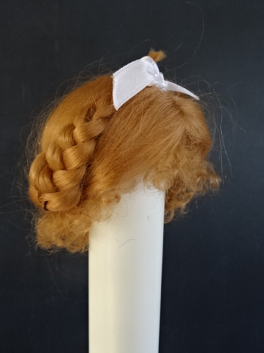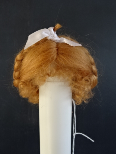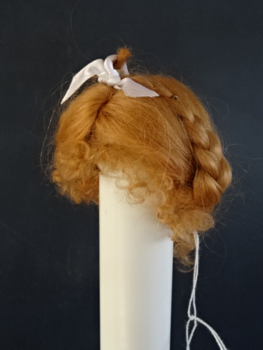 Perruque 100% mohair, nattes relevées sur le dessus de la tête.