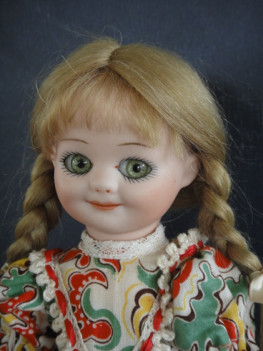 Tête en porcelaine magnifiquement peinte, yeux paperweight verts.