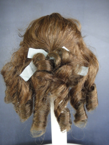 Perruque en cheveux 100% naturels, cheveux longs avec boucles et frange.