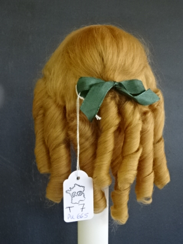 Perruque 100% mohair, cheveux bouclés et frange frisée .