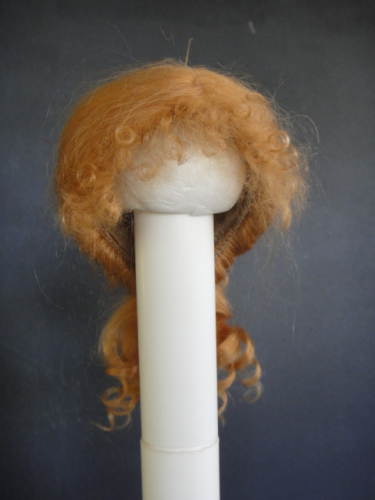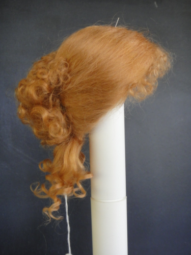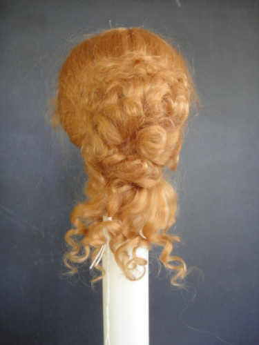 Perruque 100% mohair, cheveux bouclés et relevés vers l'arrière. Perruque idéale pour poupée de mode ou poupée parisienne.