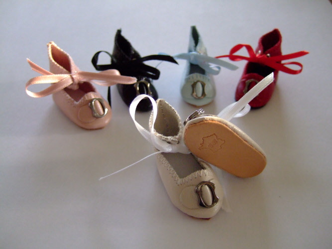 Petite boucle sur le dessus de la chaussure. Ruban de satin à nouer autour de la cheville.